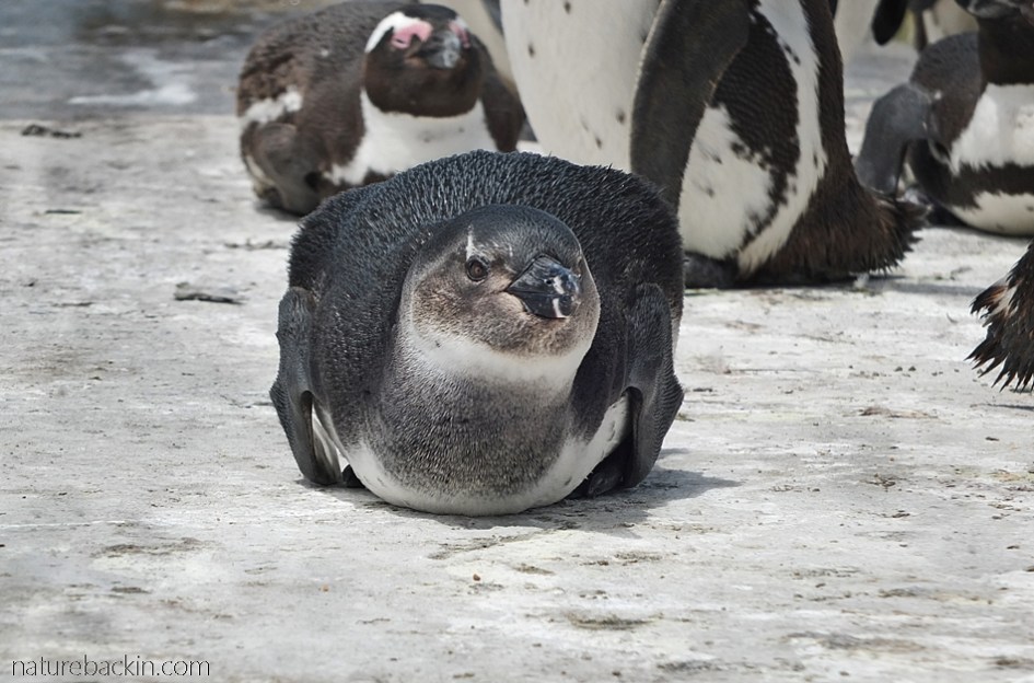 Above is a fully fledged juvenile African penguin, photographed while it rests among other penguins on a slipway at Stony Point at Betty’s Bay. African penguins have the potential to live as long as 27 years.