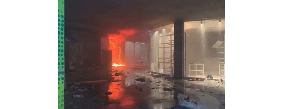 Screen grab from anonymous video circulating on social media of a Pinetown shopping mall in KwaZulu-Natal that was set alight after being looted