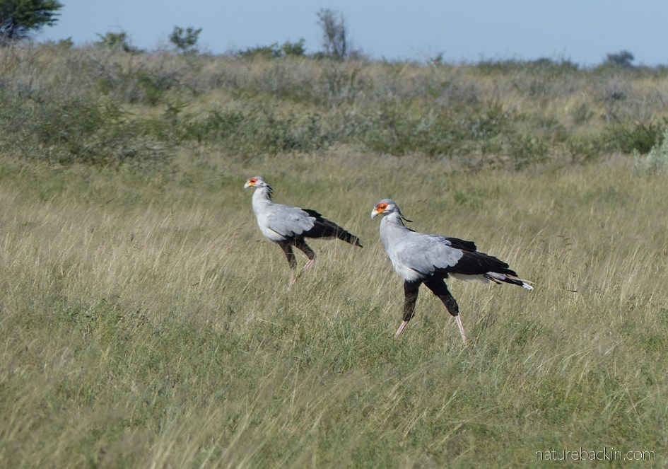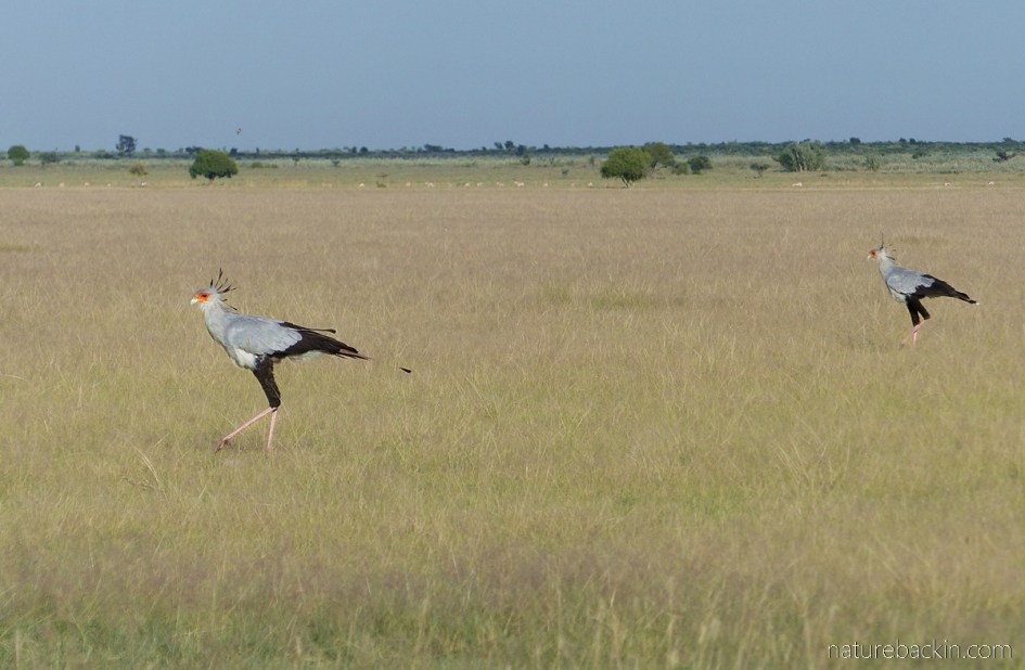 Whatever the origin of the name, the sight of a pair of secretarybirds striding purposefully across open grasslands is unforgettable