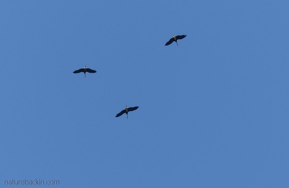 So here were these wild birds close-by right in our neighbourhood yet soaring high overhead. African woolly-necked storks (Ciconia microscelis) are large wading birds that are mostly at home in wetland habitats and on flood plains and they also occur in coastal habitats including mudflats and estuaries. In recent times they have adapted to surviving in agricultural lands and even in some suburban areas too.