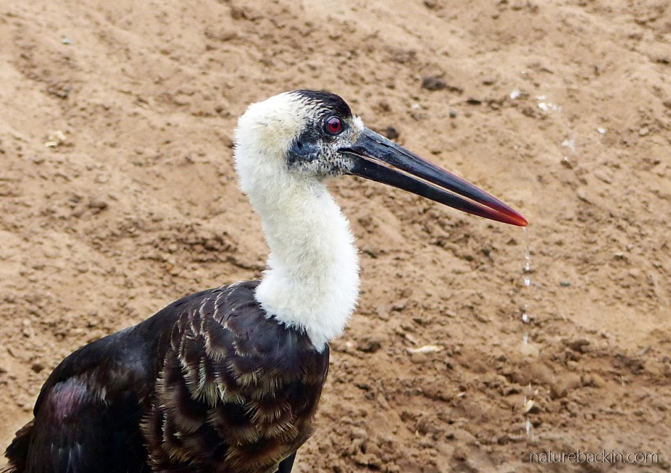 For a closer look, below is a photo of an African woolly-necked story taken while it was drinking at a waterhole in Mkhuze Game Reserve in KwaZulu-Natal.