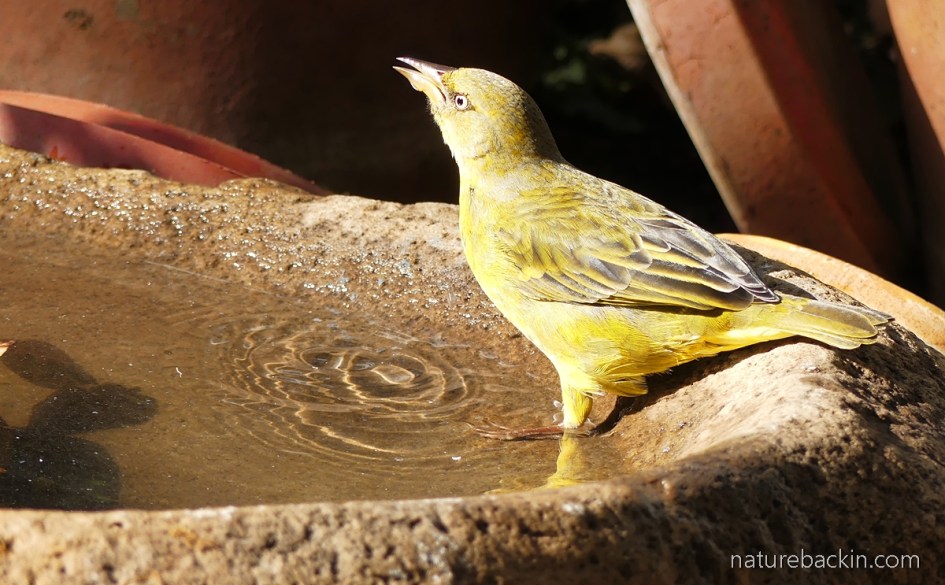 Cape weavers have been very vocal calling from trees around our new garden and coming down to ground level to drink. Cape weavers were occasional visitors at our KZN home but were outnumbered by village weavers that don’t occur in the Western Cape at all.