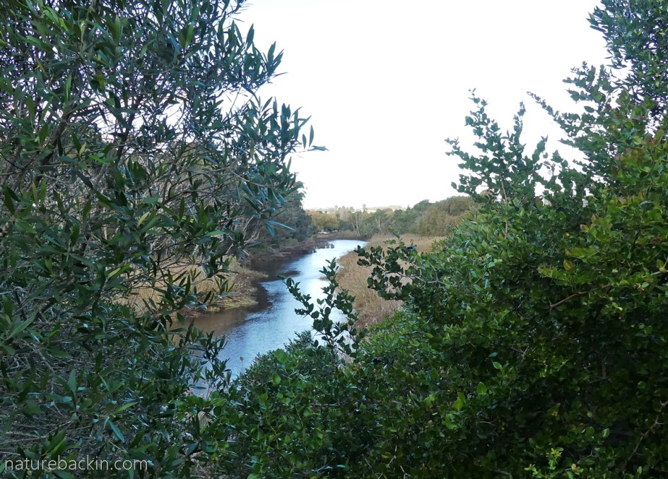 A view of the Klein River from an elevated section of the Wandelpad, which for the most part follows the river that flows past the edge of Stanford village.