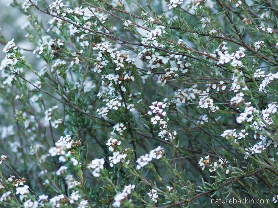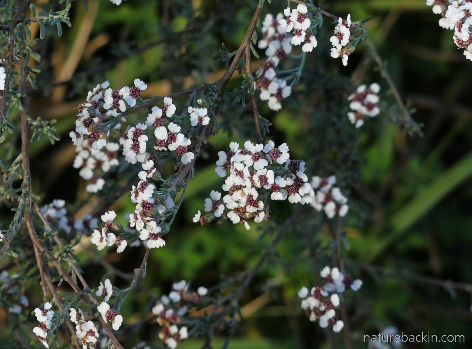 Massed together, profusely flowering wild rosemary certainly brightens up the winter landscape. After flowering, the flowers are replaced by fluffy white seedheads resembling cotton wool or snow, hence the alternative name Cape snow bush or kapokbos in Afrikaans.