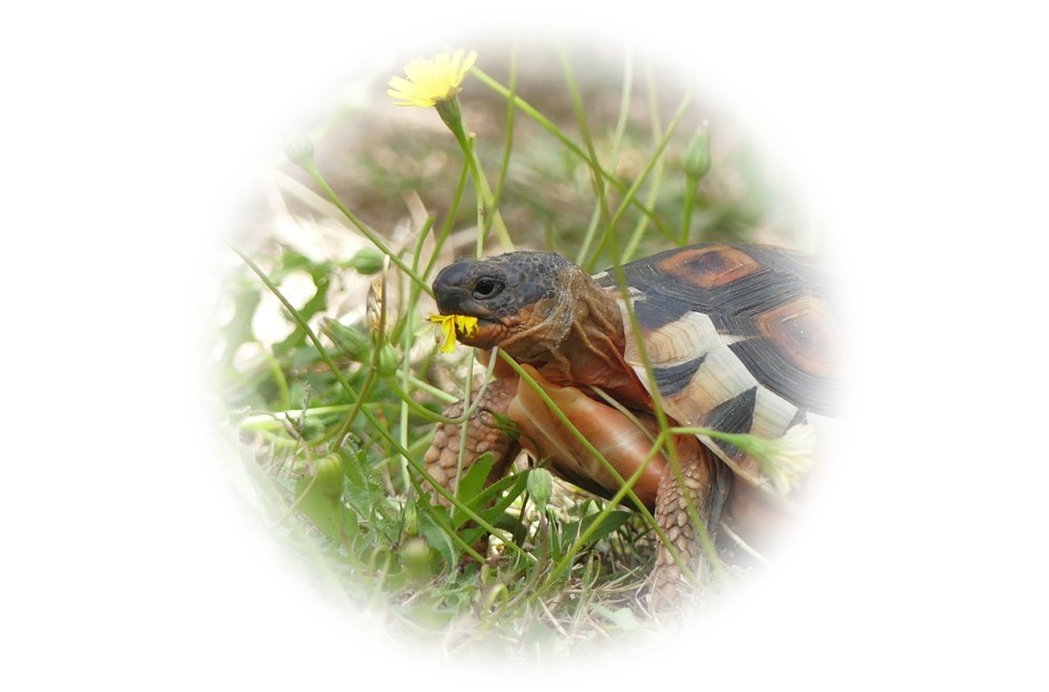 Tortoises are thought to have reasonably good eyesight and they have the ability to see colours – explaining how our visitor honed in on the bright yellow dandelion flowers!