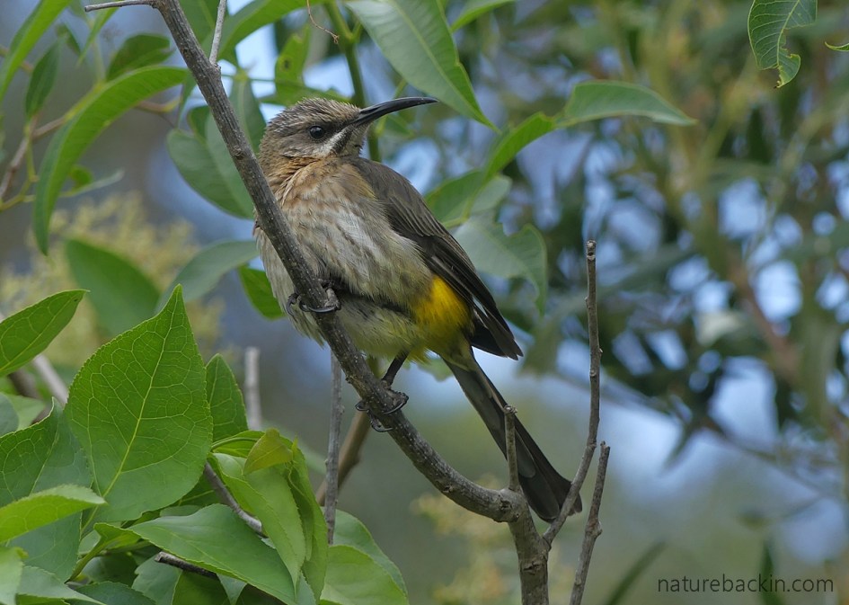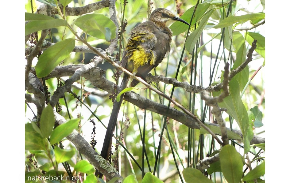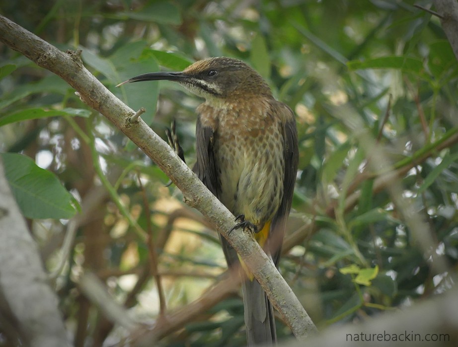 While preening, this Cape sugarbird fluffed and parted its feathers revealing more yellow colouring in its feathers than when it presents a sleeker appearance