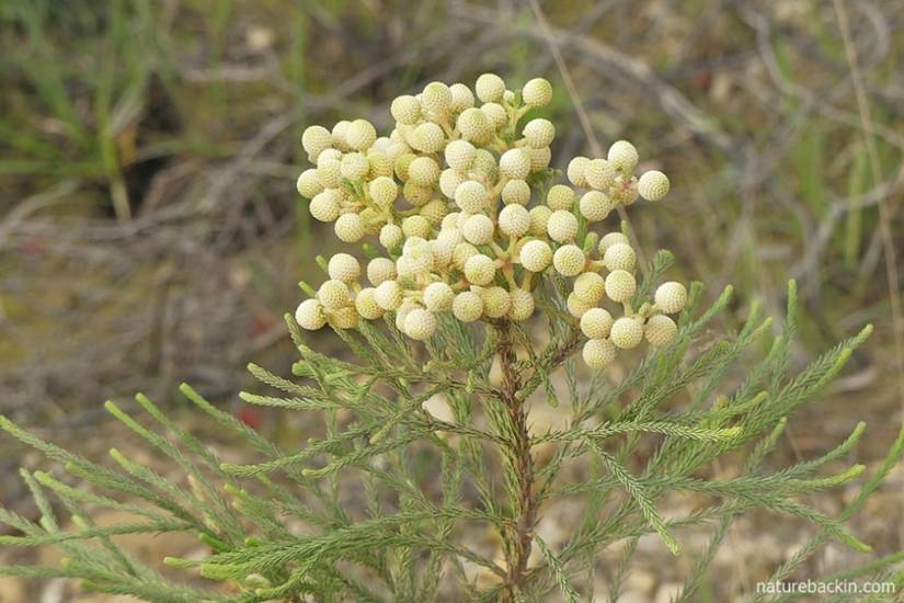 In all species of Berzelia, small flowers cluster in round balls that group in branched heads. These flower heads are very popular in the cut flower trade and they are used as filler plants in bunches of fynbos flowers. All twelve species of Berzelia are endemic to South Africa, mostly to the Western Cape. All of them are able to resprout after fire.