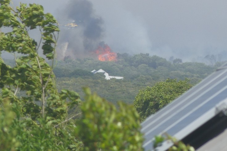 Pockets of smoky fires still burning in alien vegetation at the base of the mountains on 23 December. These pockets were largely contained though still being monitored.