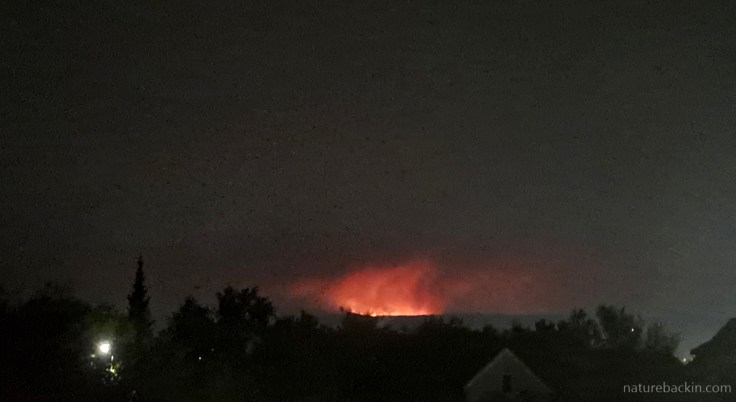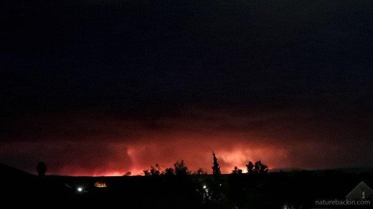 The fire in the direction of Elim and Baardskeerdersbos from our window on 14th January, just before the drizzle that dampened down the flames