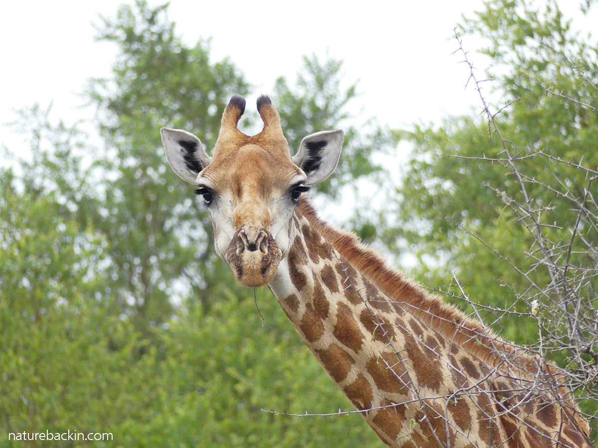 Giraffe are always fascinating to watch. Usually they are sedate and they spend a lot of time browsing leaves to provide nutrition for their enormous bodies. Recently at Kruger National Park we saw giraffes galloping away from an apparent threat, and later a giraffe nearly trod on a ground-roosting nightjar that otherwise we would have overlooked.